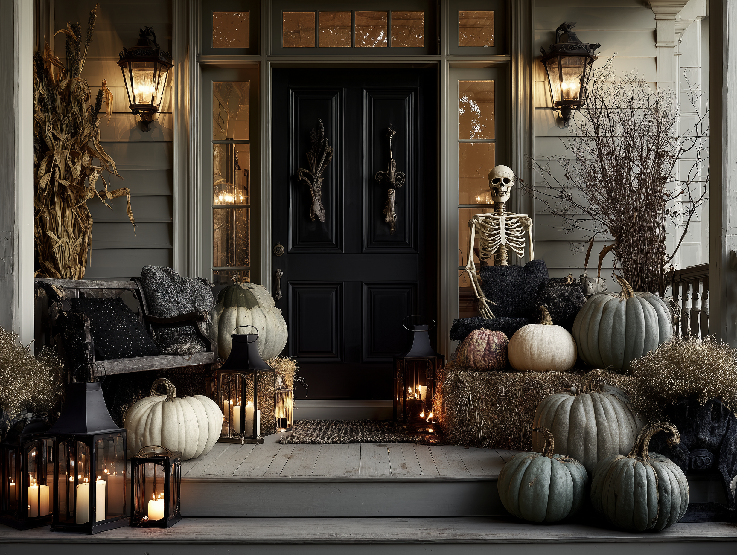 The Spooky Collection is where gothic elegance meets seasonal edge. Think black taper candles casting dramatic shadows, heirloom pumpkins in muted tones, and velvet ribbons layered with moody textures. Chic skeletons, matte black branches, and subtle lace draping add just enough eerie drama without ever tipping into kitsch. Designed to haunt tastefully, this collection transforms porches and interiors into elevated, editorial-worthy Halloween statements — sophisticated, stylish, and unapologetically unbasic.
